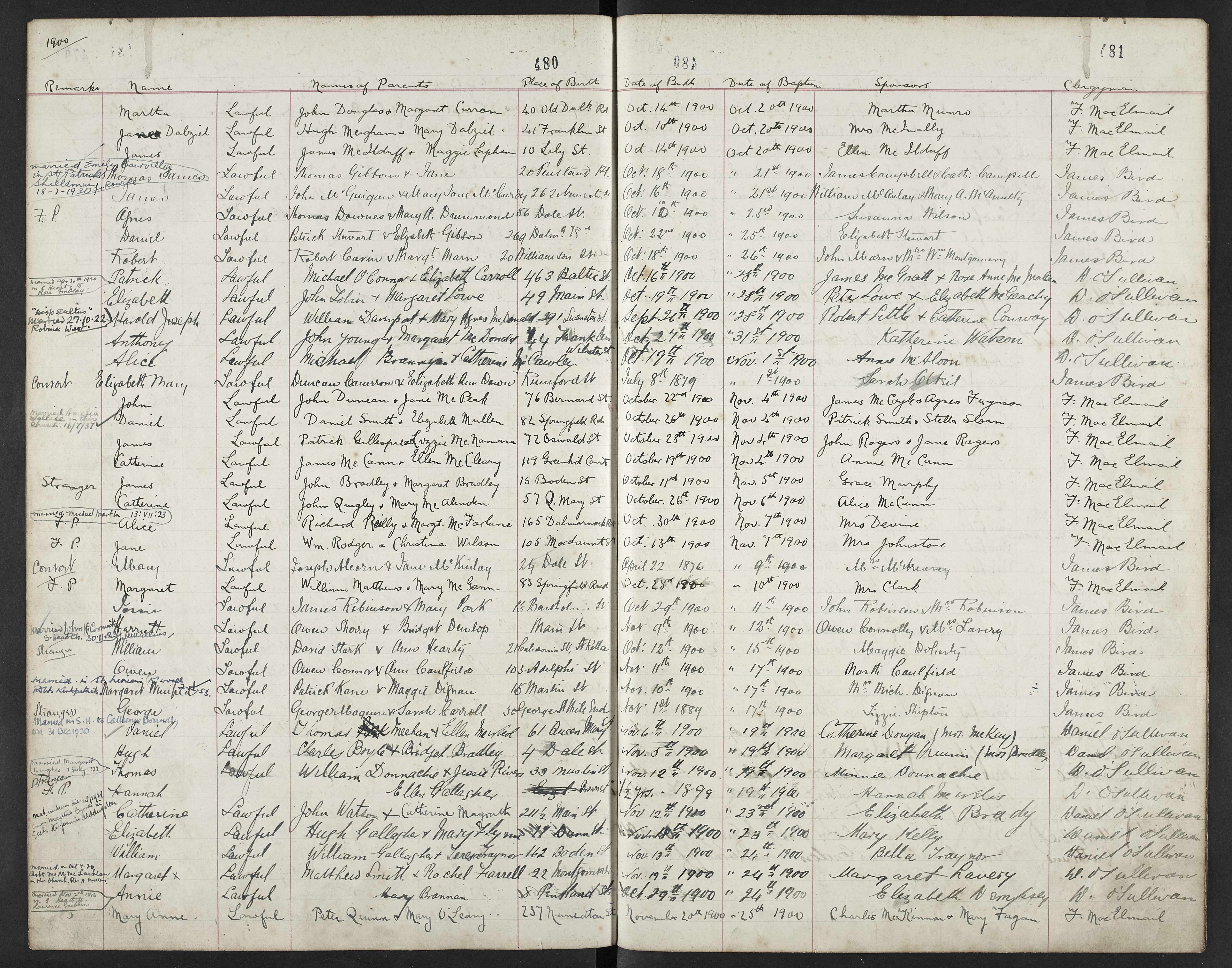 There was another child, James, born in 1894. Again I could not find a bapism for him but he does appear in the 1901 Census for the family when they are living at 56 Dale Street, Glasgow as we shall see shortly.