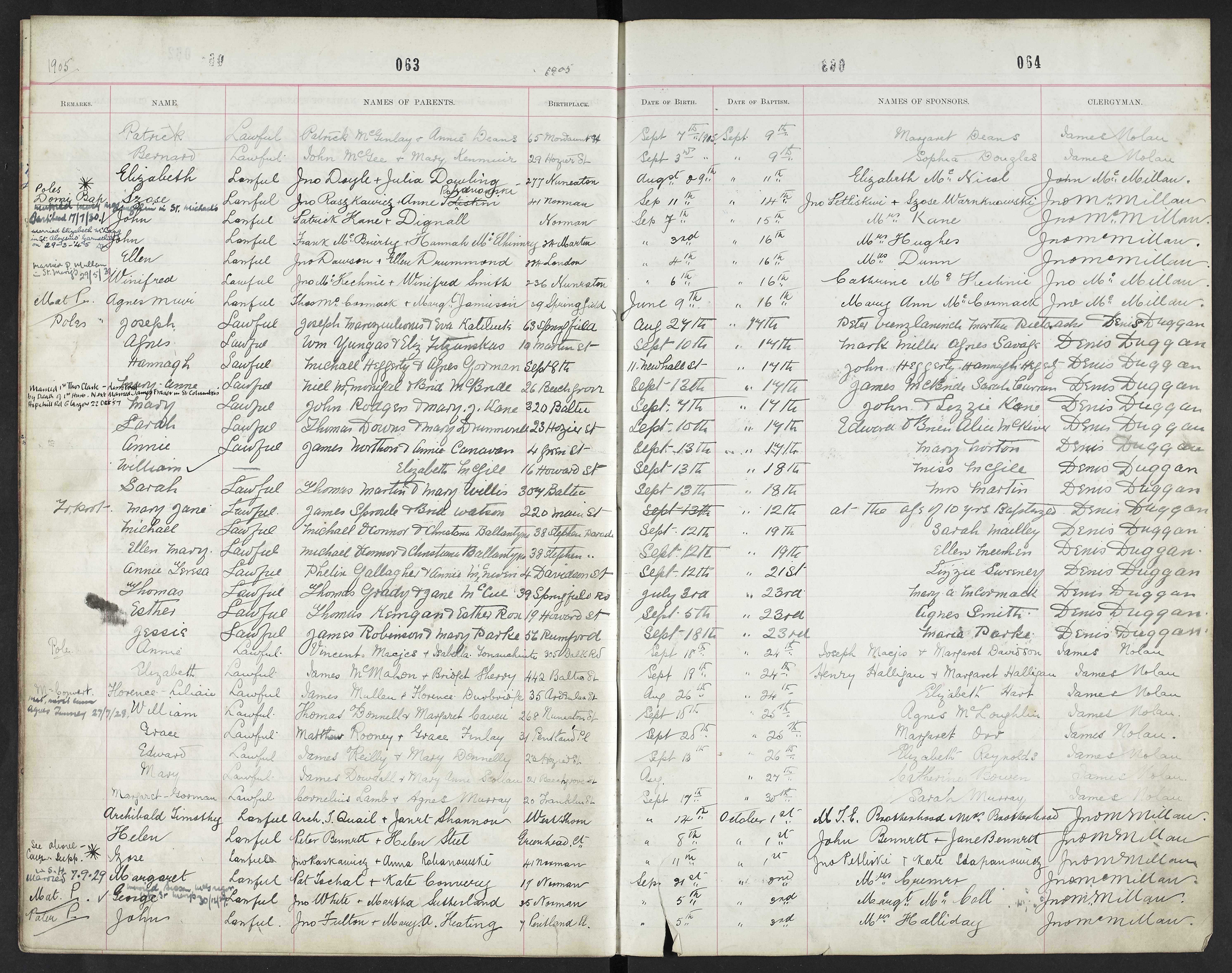 Michael Downs was born ??Oct 1902 and baptised 17 Oct 1902 in the parish of Sacred Heart, Glasgow, Bridgetown. One of the Sponsors was Sarah Drummond. His address is given as 53 Brown Street