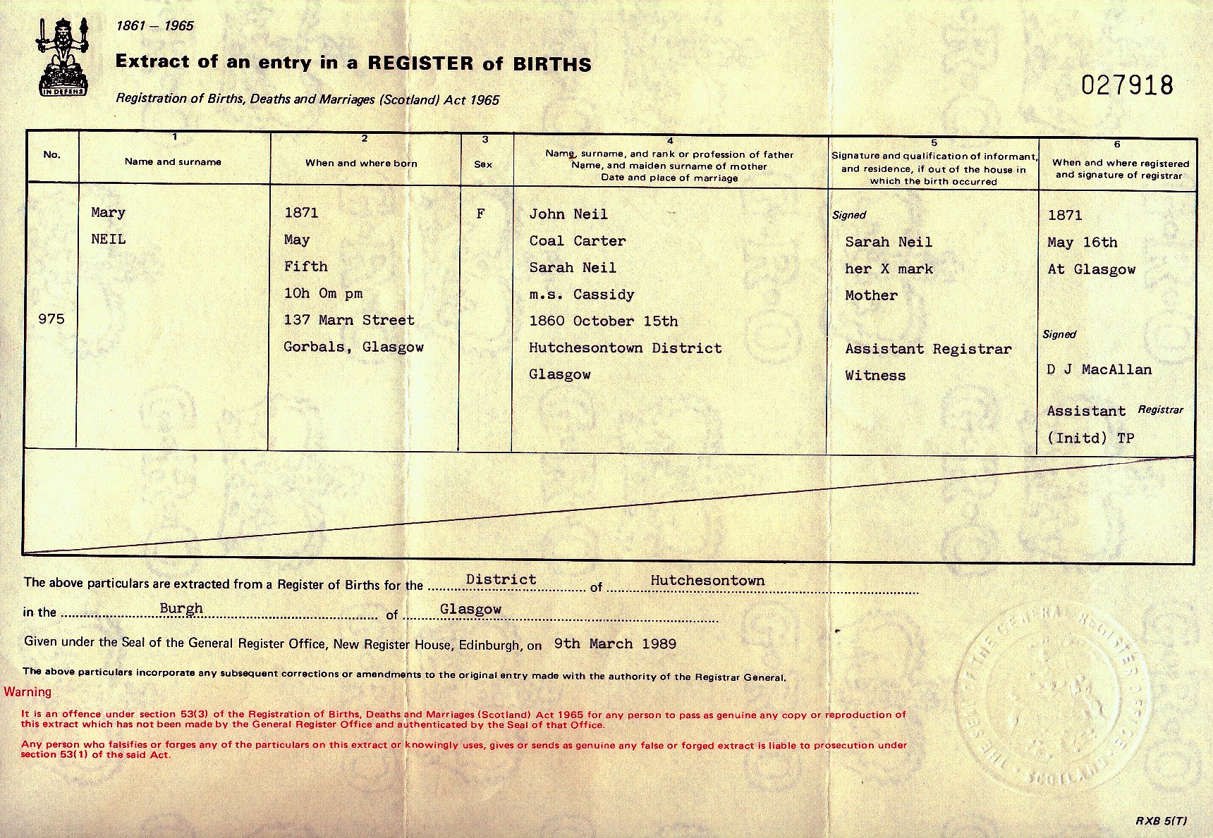 E SSBR source_N006a.jpg Birth Birth of Mary Neil 5 May 1871 5 5 1871