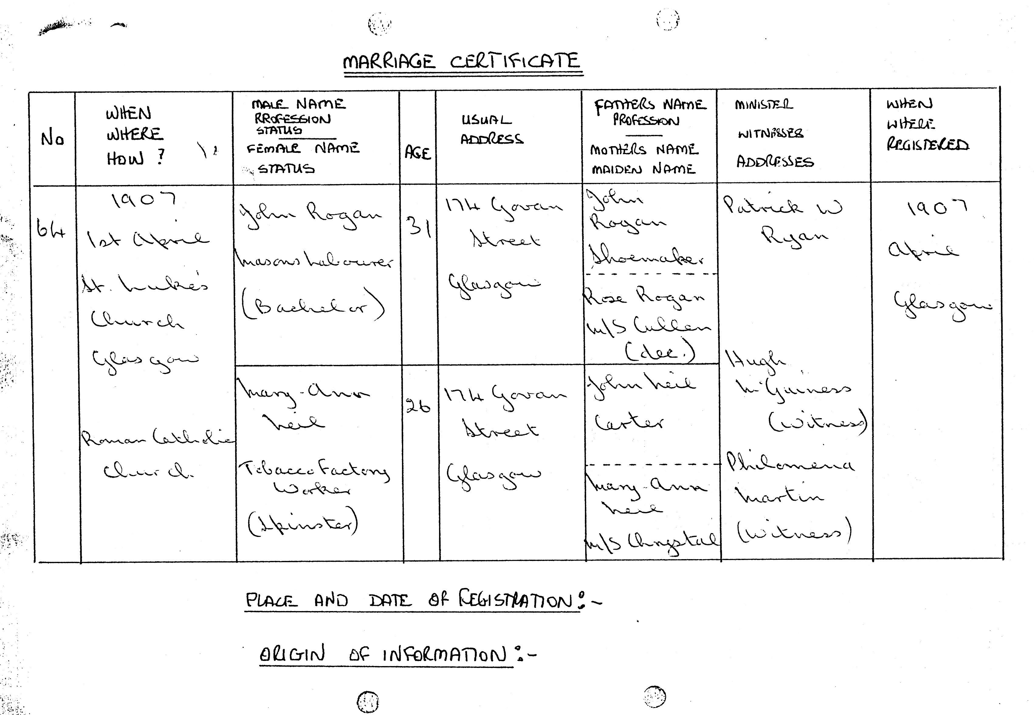 WT SSMR source_N042a.jpg Birth Birth of Mary Ann Neil and John Rogan 1 April 1907 1 4 1907