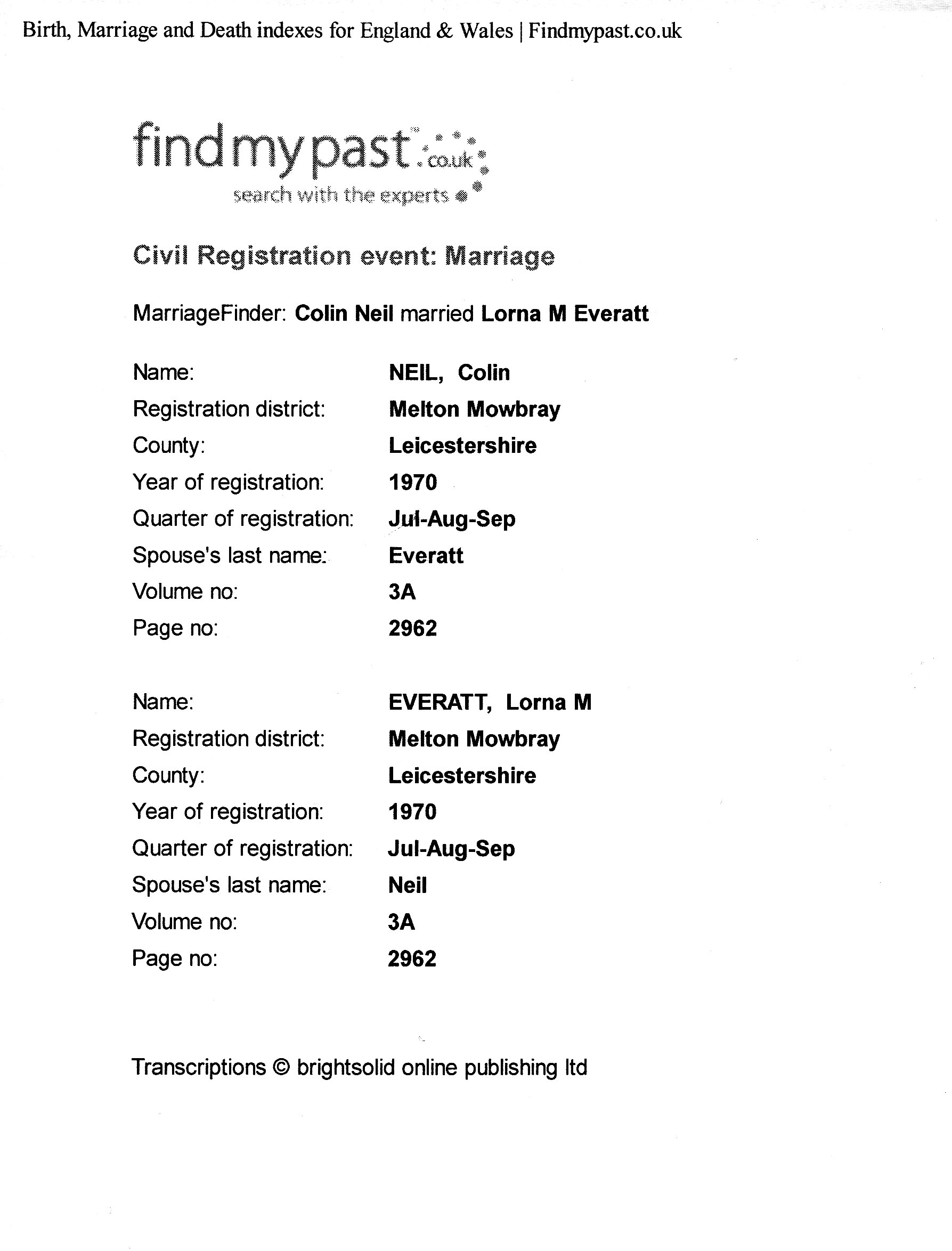 WS FMP source_N065.jpg Marriage Marriage of Colin Neil and Lorna M Everatt , 5th September 1970 5 9 1970
