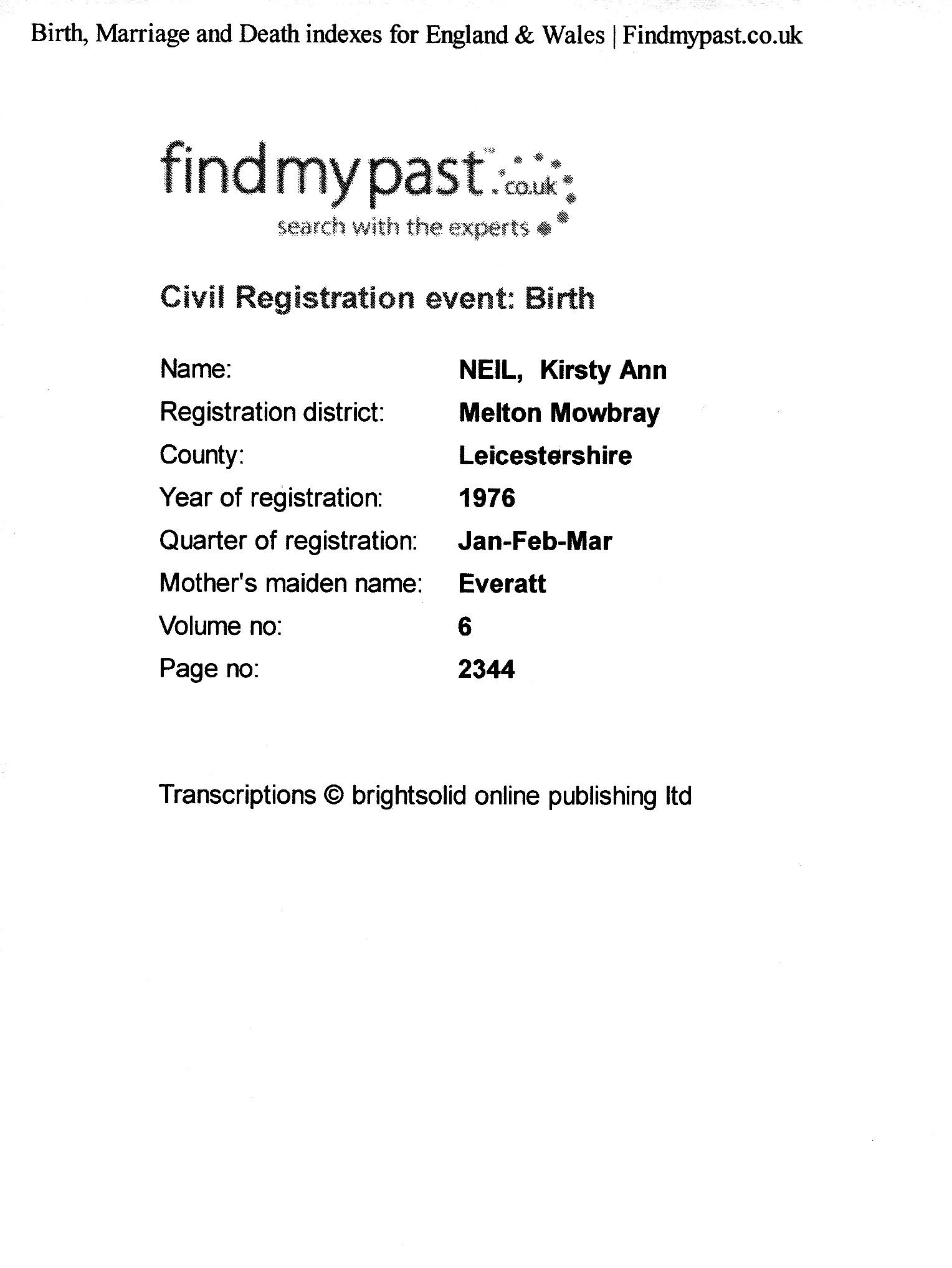WS ESBR source_N068.jpg Birth Birth of Kirsty Ann Neil 28th December 1976 28 12 1976