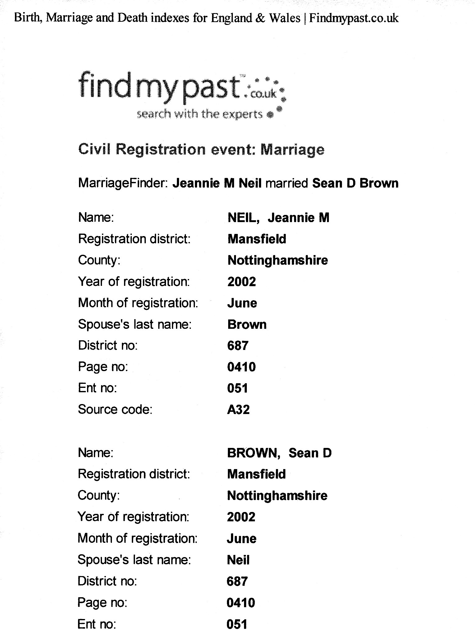 WS ESMR source_N076.jpg Marriage Marriage of Jeannie McDonald Neil to Sean Desmond Brown June 202     2002