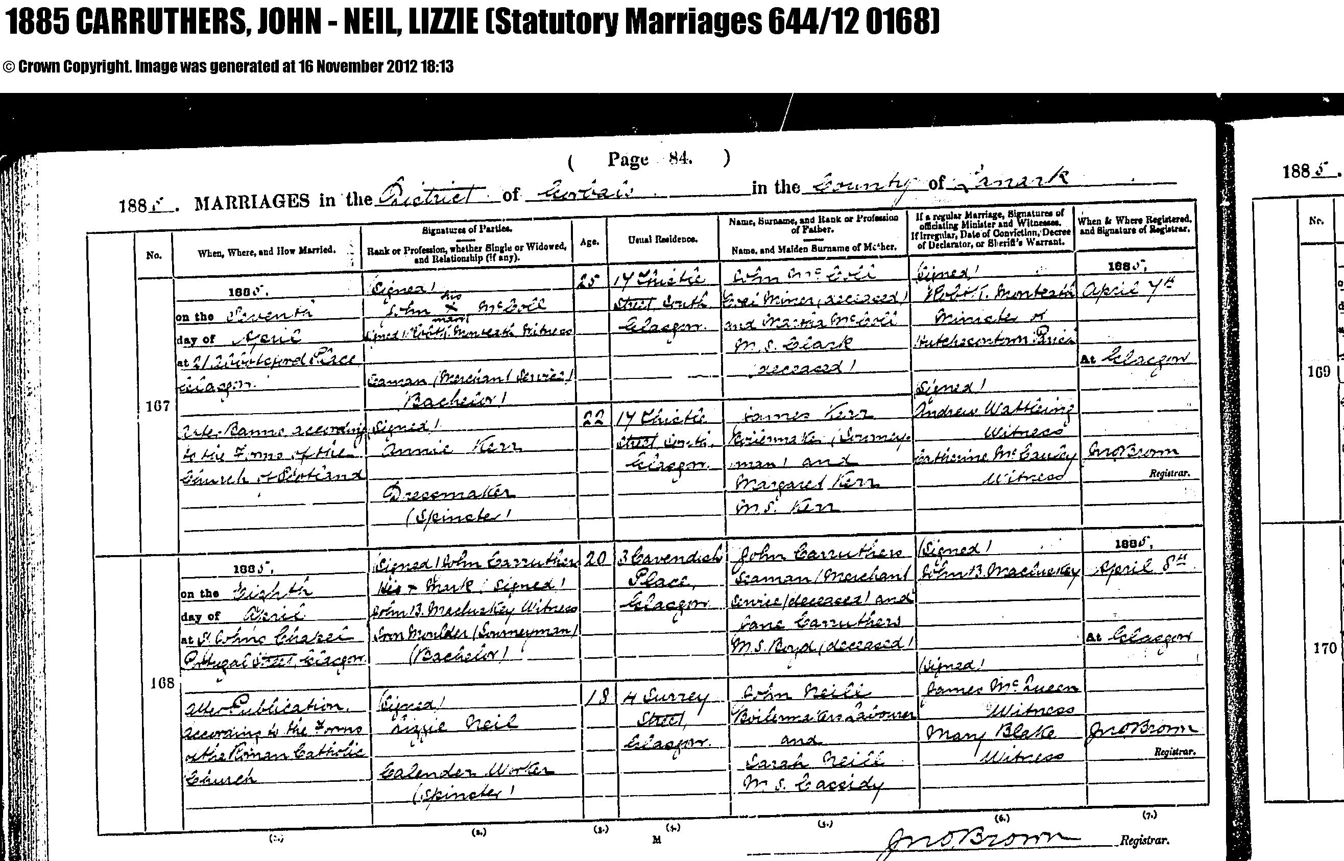 E SSMR source_N091.jpg Marriage Marriage of Lizzie Neil and John Carruthers on 7th April 1885 7 4 1885