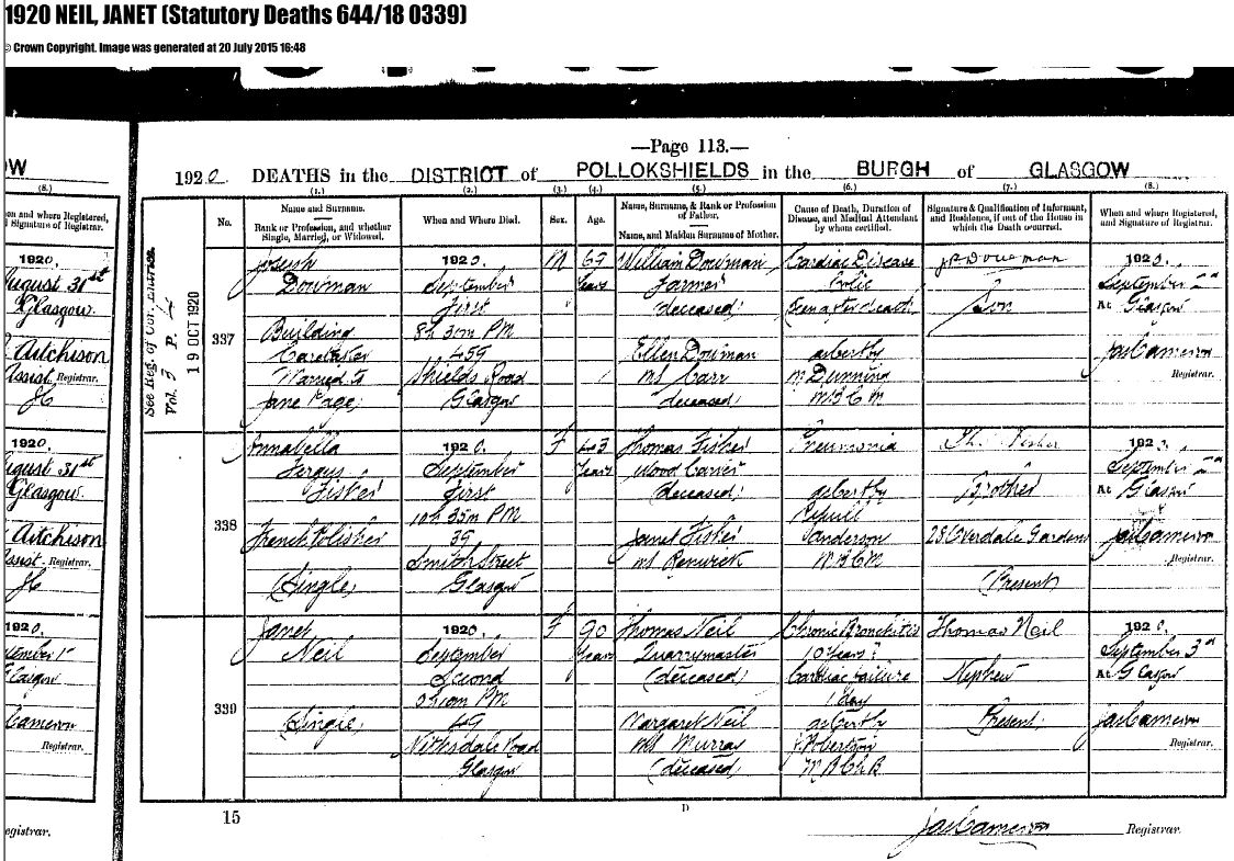 I SSDR source_N118.jpg Death Death of Janet Neil 2 September 1920 2 9 1920