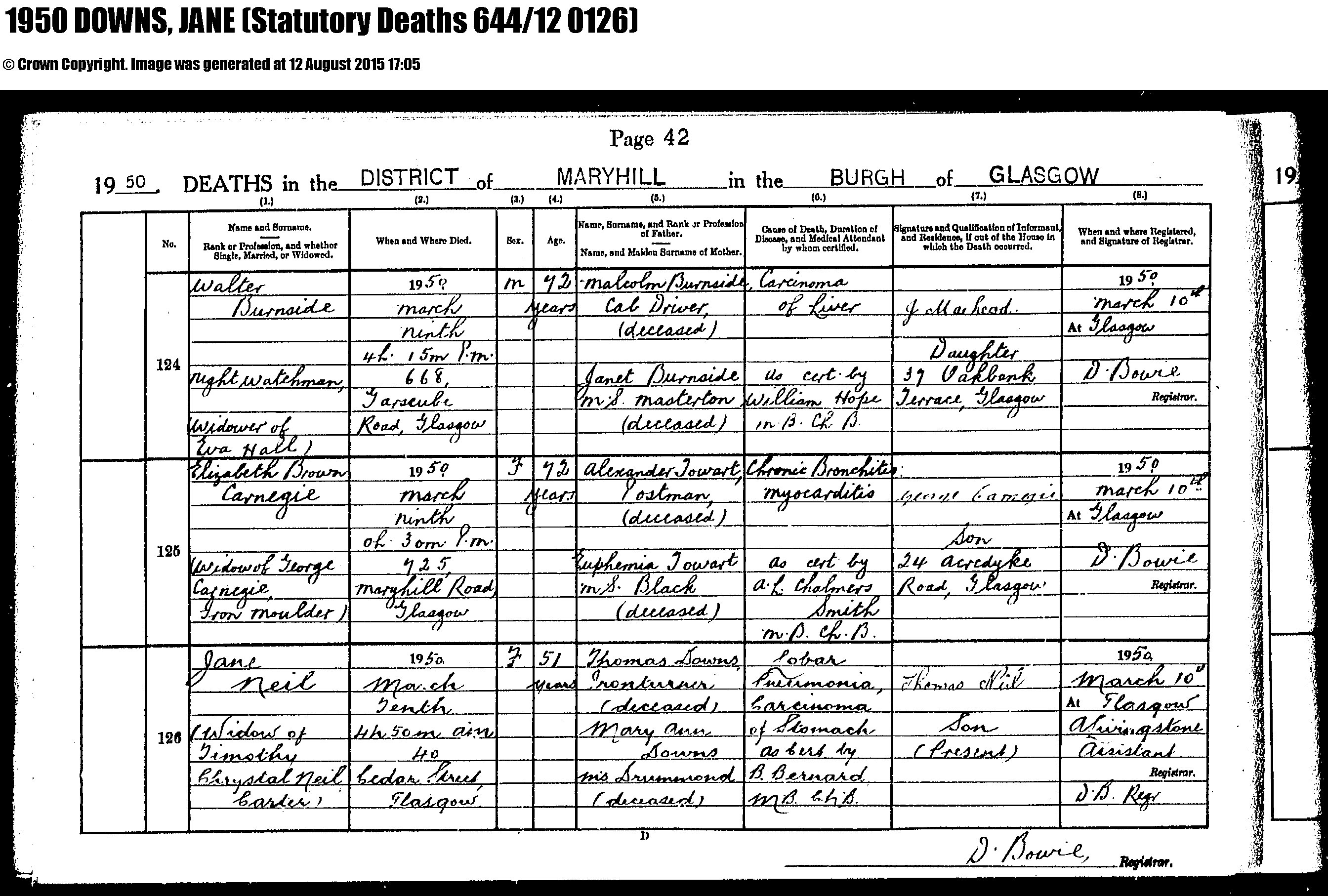I SSDR source_N125.jpg Death Death of Jane Neil ms Downs aged 51 10th March 1950 10 3 1950