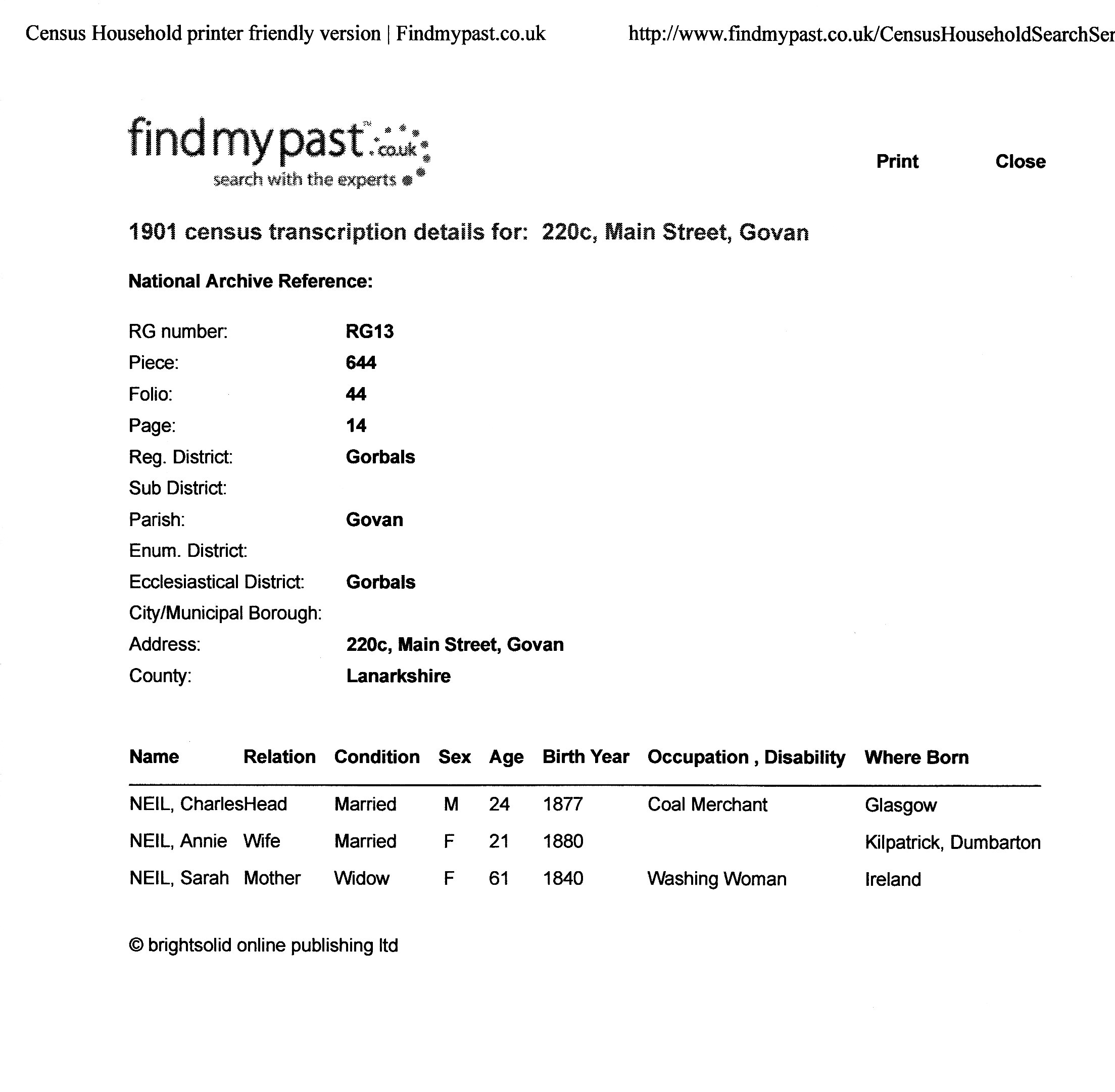 WS FMP source_N039b.docx Census Census John and Mary Ann Neil 31 March 1901 31 3 1901