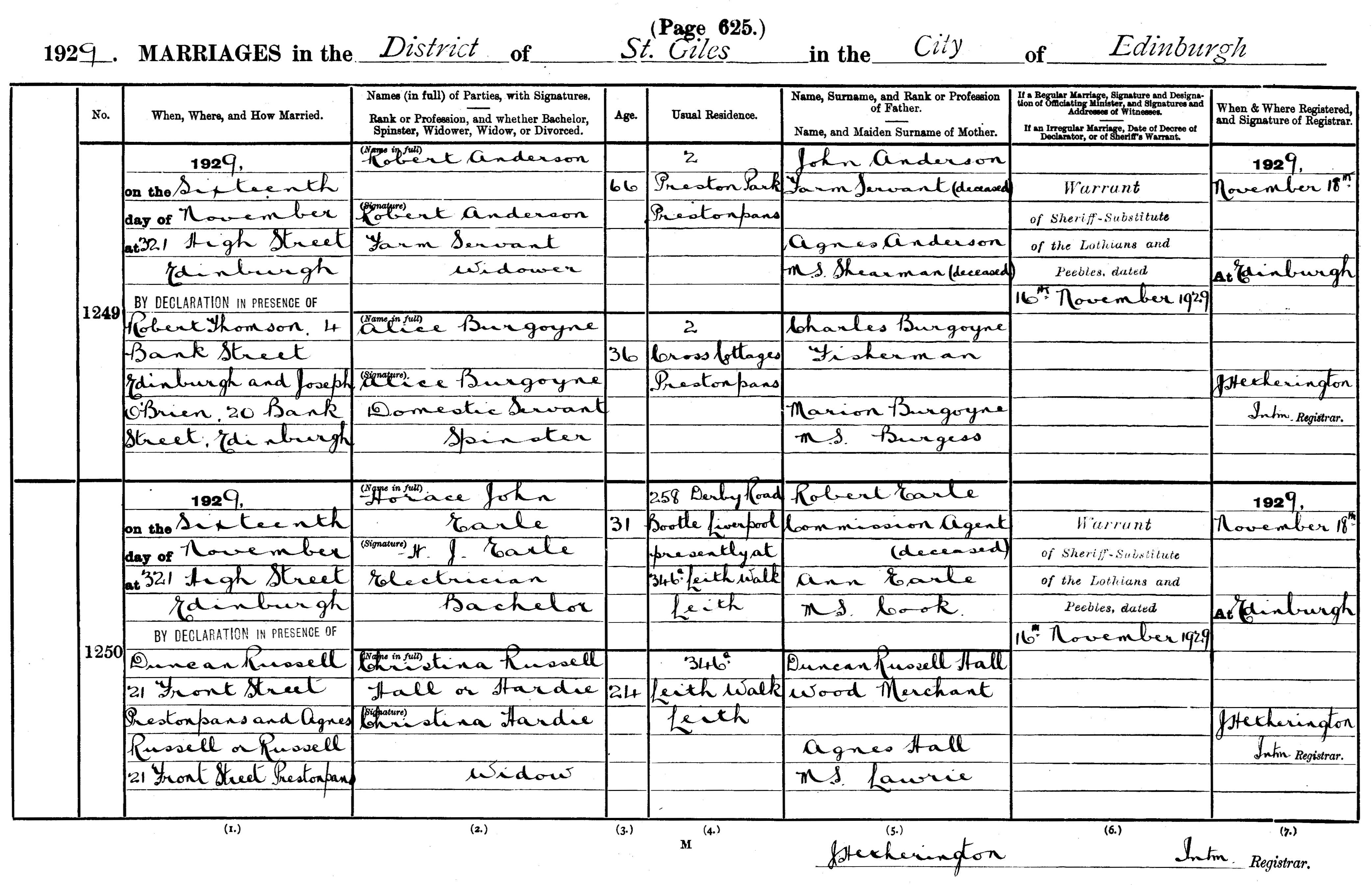 1929 MARRIAGES in the DISTRICT of ST GILES in the City of Edinburgh