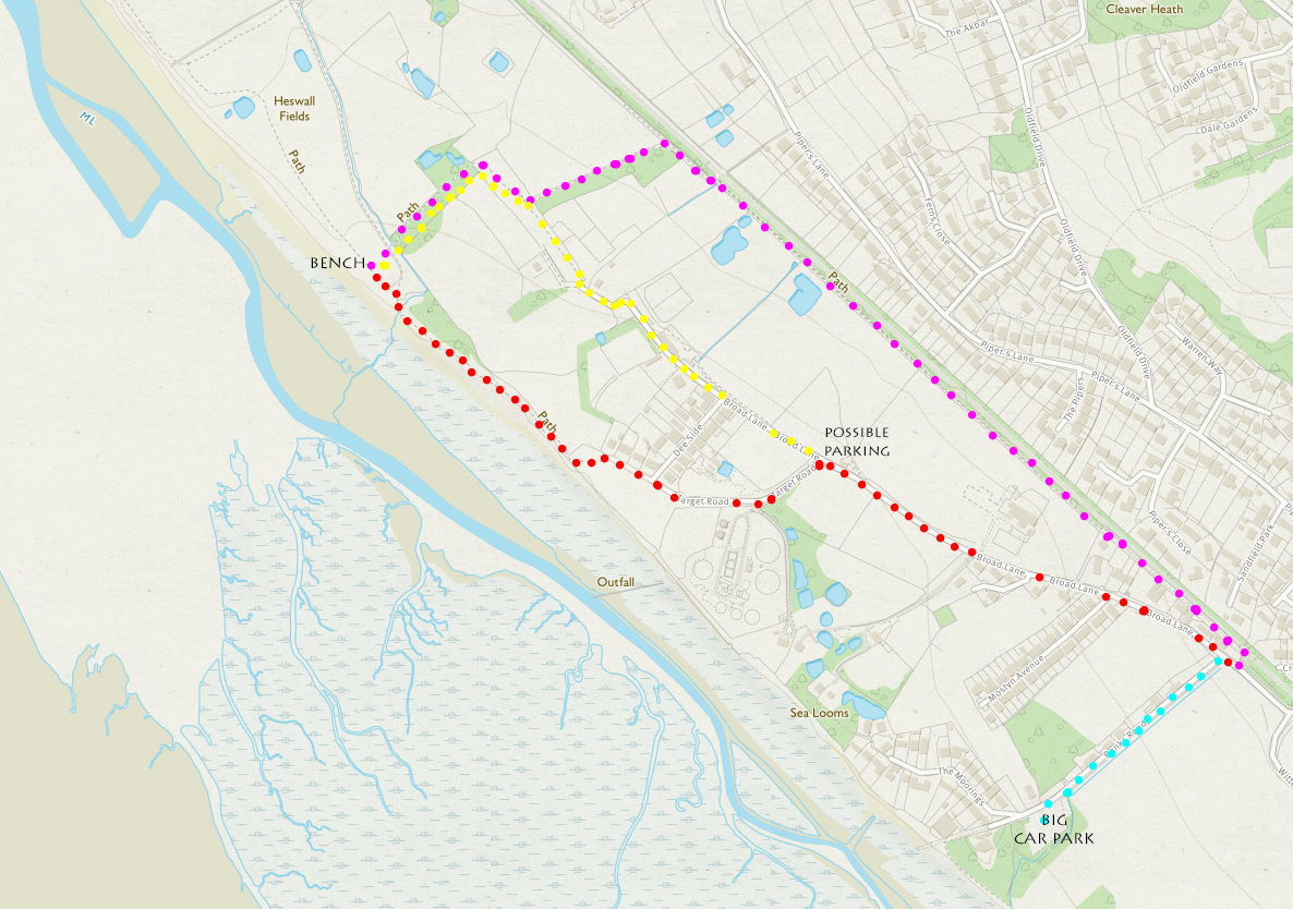 From a personal point of view, we wanted to see if there was a quicker way to get to this location at Heswall Fields so we could spend longer there and less time getting there. Accodingly we decided to get as close as we could first and see what emerged from there.