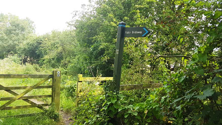You go through here and follow the straight path until you find yourself at the meadow with the S-shaped path. On your right you will see the path that leads to the Wirral Way but you don’t want this one. Instead cross the meadow to the left-hand corner and there you see the lane that leads directly down to the marsh and the bench.
